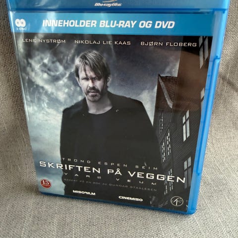 Varg Veum Skriften På Veggen Blu-ray og DVD. Inneholder både Blu-ray og DVD-format av filmen. Dette er en del av Varg Veum-serien med spennende krimfortellinger.