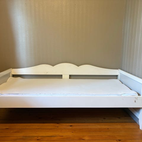 Seng fra Ikea med noen bruksmerker. Må hentes på Siggerud. Madrassmål 1,70 *60, madrass følger med. Sengehesten er mulig forsvunnet....