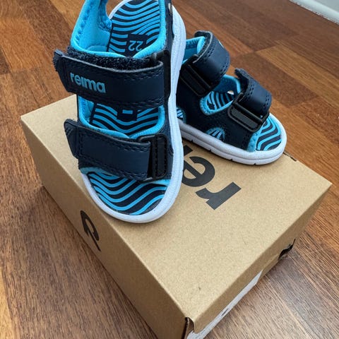 Blå Reima sandaler str 24. Ikke synlig brukt, kun prøvd på en gang. Normale i størrelsen. Selges da gutten plutselig vokste mye i føttene.