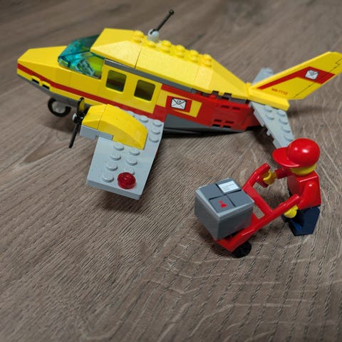 Flyplass og fly fra Lego Friends. Setter er fra 2015. Mannen/piloten har manglet helt fra settet var nytt. Ellers er det lite som mangler, bortsett fra en skjerm til flyplassen o.l. Bruksanvisning er inkludert.