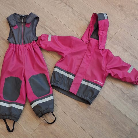 Regntøy fra didriksons str 80, og skaldress fra reima str 74. Lue følger med. Selges samlet for 600