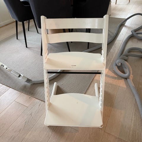 Tripp trapp stol selges. Litt striper på treverket (se bildet) men syntes ikke mye