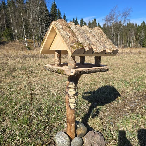 Håndlaget stabbur, som trenger litt omsorg og stell. Egner seg kun til pynt. 75 cm. høyt.