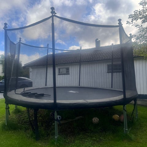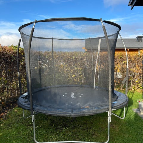 Kjøpt ny i 2025 for 3400kr i god kvalitet. Ble brukt minimalt i 1 mnd pga været før den måtte pakkes ned før høsten. Fikk en ekstra trampoline i gave som gjør til at vi selger den ene.