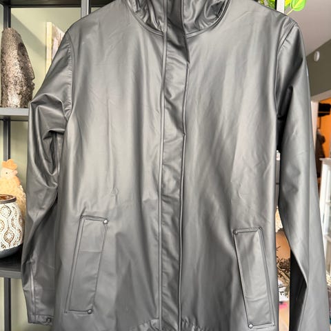 Regnjakke med sveisede sømmer, justerbar hette og refleksdetaljer - str 42