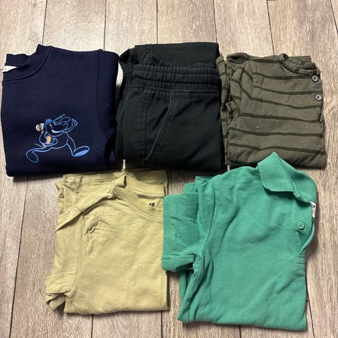 Det meste er str 110/116, en genser str 104, men tilsvarer mer 110.