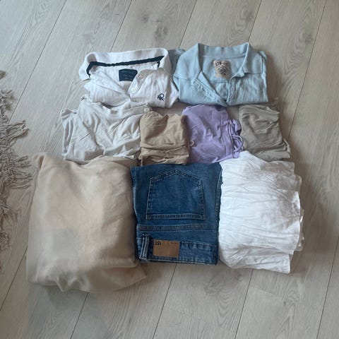 Pent brukte klær, en jeans, to skjorter og en genser. Se gjernf mine andre annonser, kjøper du mer blir vi enig om prisen 😊