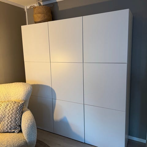 Pent brukt skapdør med Ikea Eneryda messingfarget håndtak.