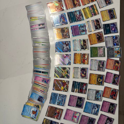 Selger noen brukte Pokémon kort fra Japan. Ingen bruksmerker som jeg kan se. Pikachu er i en lomme.