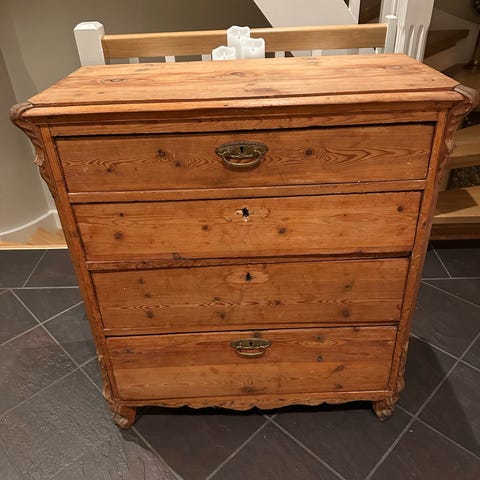 * Vet ikke alder, men det antas å være et eldre møbel, kanskje fra 1800- eller tidlig 1900-tallet, men dette er kun et estimat basert på stil og utseende.