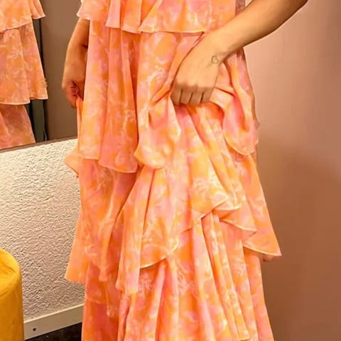 Flott tettsittende kjole, stoffet er veldig elastisk, knytedetalj i brystparti. Knallrosa farge. Den er kun prøvd og ikke brukt og er derfor i god tilstand.