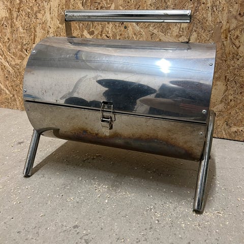 Bærbar grill kjøpt 2024, brukt 3 ganger forrige sommer. Den har litt rust, men er helt ok. Den har stått på loftet etter det siden vi fikk oss større grill. Veldig praktisk grill som er enkel å ha med og vedlikeholde. Best i test 2022.