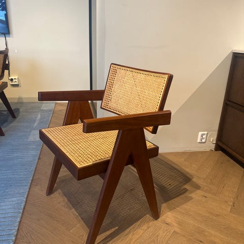 Rotting stol inspirert av den klassiske vintage stolen til Pierre Jeanneret, men med modifiseringer. Redesignet av lokale håndverkere på Bali med lang tradisjon i faget sitt.