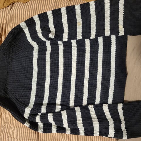 Marineblå og hvit stripete genser fra Cubus, str XS. Lite brukt, ingen skader eller nupper, Kan hentes på Hosle i Bærum.