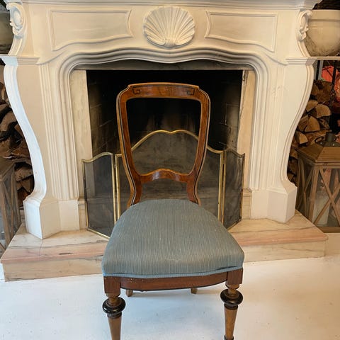 God å sitte på. Setet er restaurert. Dette er en av endestolene som var vanlig på eldre utgaver av de gustavianske bordene.