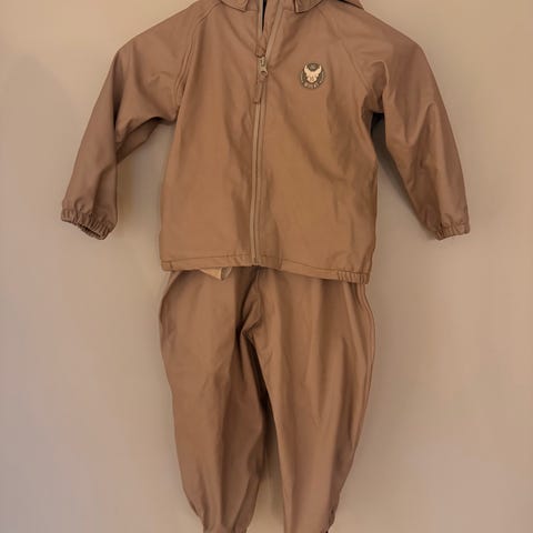 Wheat regntøy dress for barn i størrelse 98. Denne unisex dressen er laget av slitesterkt materiale og kommer i en nøytral gråfarge. Perfekt for utendørs lek i vått vær, med god passform og beskyttelse mot regn.