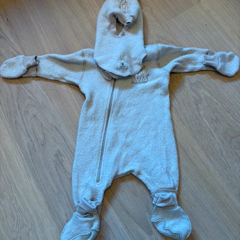 Brukt ullfleece heldress fra Janus i strl. 70. Disney / Simba. Har fått en søm i ene foten (se bilde) og er litt nuppete, men kan fint brukes videre.