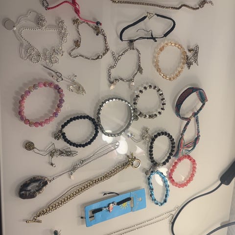 Halskjeder, kr 25 pr stk. De to til høyre er solgt