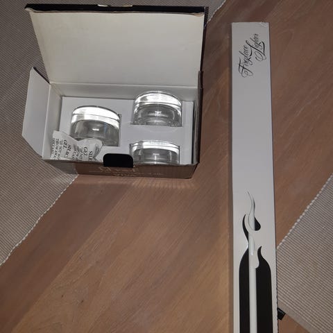 To veldig fine lysestaker, modell Galerie fra det danske merket Menu, designet av Pernille Vea. Stakene er i glass og stål, og de kan variere utseende ved at man kan fylle glasset med ulik pynt mm.