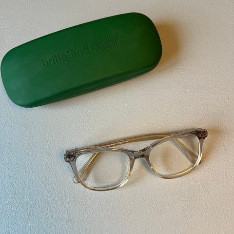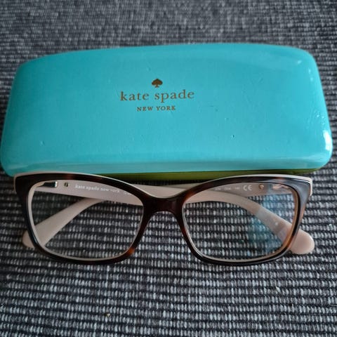 Stilige Kade Spade solbriller i høy kvalitet i acetat i melkeggrønn farge. Pent brukt, har noen små bruksmerker. Ikke brukt lenger, har for mange.