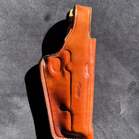 Pistolholderen sklir inn i magasinslotten og holder våpenet.
