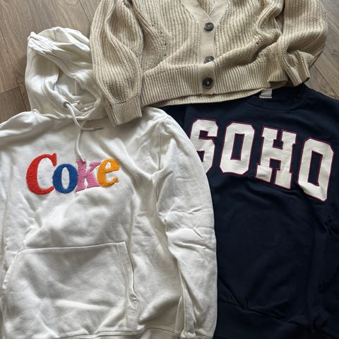 Farge: svart (2 stykker), lilla (1 stykk), marineblå (1 stykk), hvit (1 stykk), lysegrå (1 stykk).