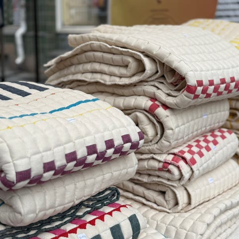 Nydelig håndlaget sujni-teppe som også kan brukes som sengeteppe, kjøpt fra kalaa.no.