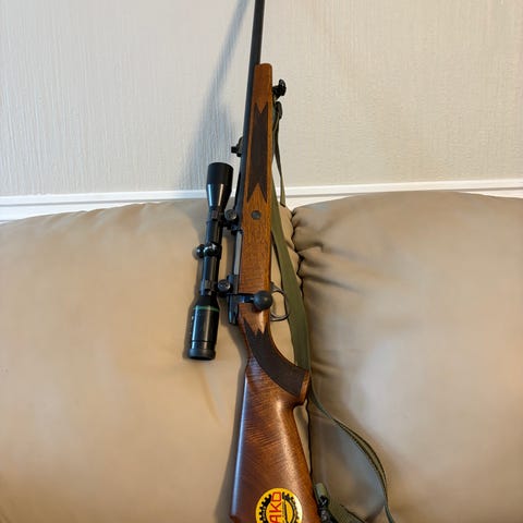Våpenet er lite brukt og har iflg meg ikke noen synlige bruksmerker.Våpenet selges med fastmontert kikkert Redfield 4x- 12 x. Dette er etter min mening og som skyter i mange år et smykke av et våpen..Våpenet selges til høystbydende og betalingen kreves før det sendes i første omgang uten sluttstykke mot godkjent våpenervervelse fra Politiet.