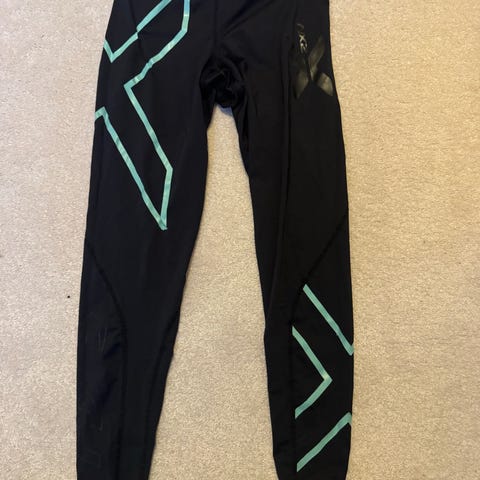 2 løpetights fra 2XU, str. XS. Begge i god stand, men den ene har et lite hull over ve.kne.