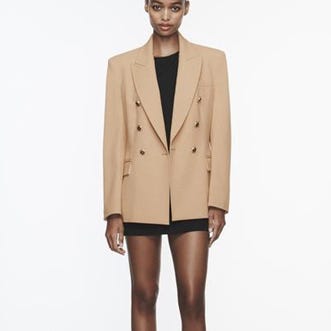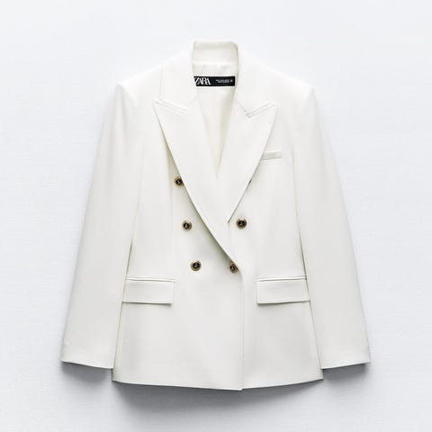 ZARA dobbeltspent blazer med struktur i råhvit og svart. Kort i snittet.