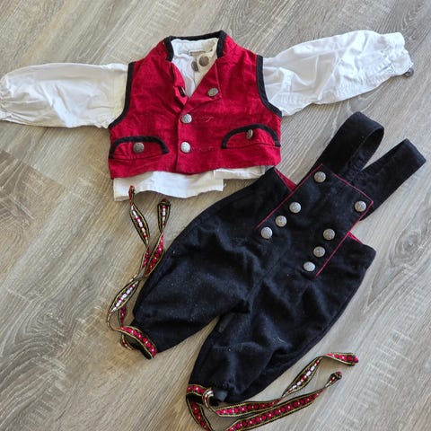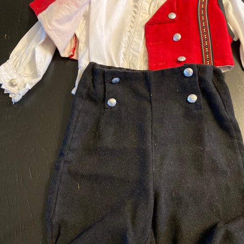 Pent brukt bunad i ull. Str. 2 år. Har en liten flekk, se bilde.