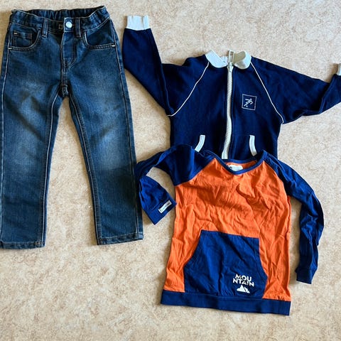 Godt brukte favoritter selges. To collegejakker med glidelås som har vært masse brukt, men er fravokst. Noe nuppete, men myke og gode. Forsterket glidelås-«lappen» på en av jakkene. Overtrekksbukse med avtakbare legger.