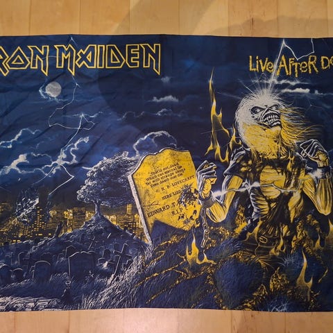 Nyprodusert ensidig trykk lite dekor flagg for vegg innvendig bruk 90 X 90 Cm. Iron Maiden , Run to the hills. Garasje, Bar, Man Cave +++. 100% Polyester. Hentes eller sendes mot porto kr 65,- m/sporing , eller med Fix Ferdig. Ønsker du og kjøpe flere varer på en frakt, ta kontakt før du kjøper. Ønsker du og reservere, vipses halve summen på forhånd. For og se mine andre annonser, trykk på profilbilde og så annonser. NB! ER PÅ JOBB MAN - FRE MELLOM 06:30 - 16:00. NOEN GANGER MÅ JEG VENTE TIL ETTER JOBB MED OG SVARE. mvh Carsten