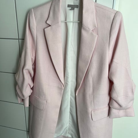 Rosa Sommerseth. Tatt bilde av anmerkning(nupper på et område på shorts og en liten flekk på blazer.) veldig tynt stoff, lys rosa.