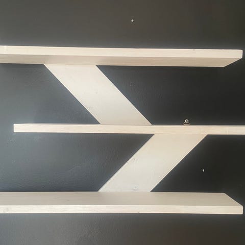 Vegghengt hylle. Hengt over skrivepulten. Ble overflødig da eieren flyttet på hybel. Som ny.