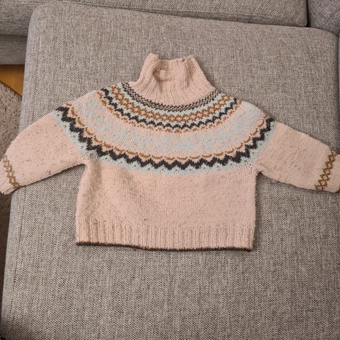 Hjemmestrikket dress i str 74 som dessverre aldri ble brukt.