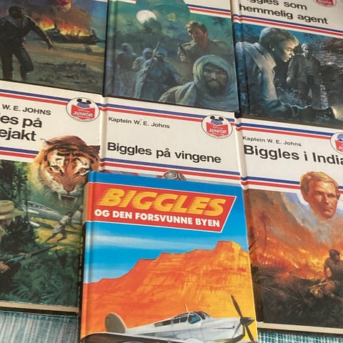 5 stk Biggles bøker. W.E. Johns. *les annonsen*
