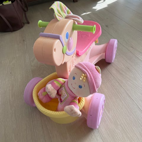 For beskrivelse av sparkesykkelen fra Skip Hop: https://www.shopping4net.com/no/Leker/Leker/Utendoerslek/Utelek/Skip-Hop-Zoo-Ride-On-Enhjoerning.htm