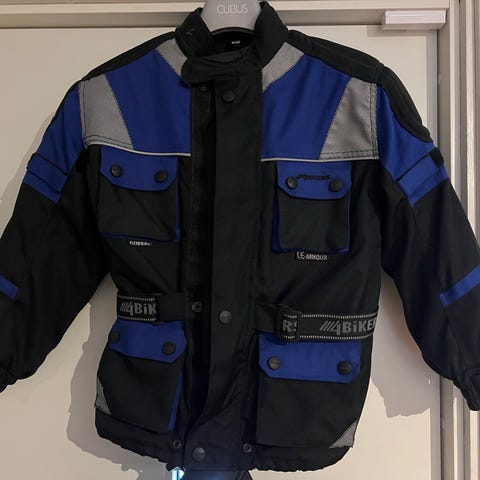 Dainese kjørejakke i str 52, sort med beskyttelse på albuer og skuldre. Avtagbart for i teknisk stoff. Lommer og justerbar stramming i liv og på ermer.