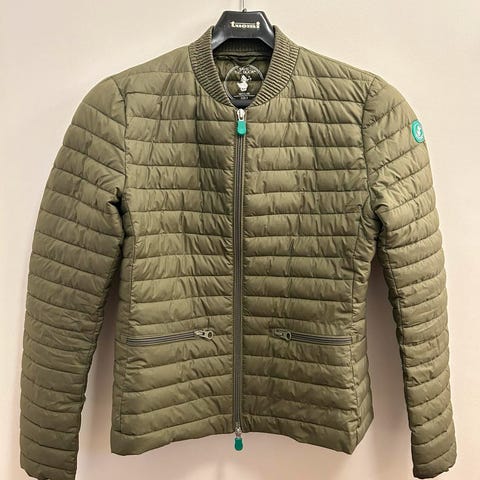 Selger save the duck jakke. Føles som en tynn boblejakke av 100% polyester. Brukt 2 ganger. Ved sending ingen retur, men du er hjertelig velkommen hjem til meg for å prøve. Størrelse small . god stand, ingen merker eller lukt, glidelåser fungerer. Farge grønn