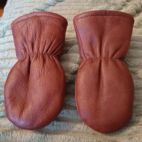 Lindberg votter til baby selges. Ikke merket med størrelse. Tror vi bare fikk tatt av lappen og at det ble feil sesong.