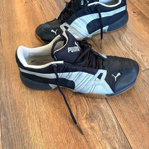 Brukt som gymsko på skolen, 7.klassing, før de ble for små. Passer til de med brede føtter.
