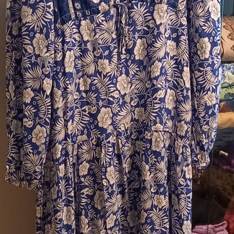 Farge: Hvit med blått mønster i form av vakre blomster.