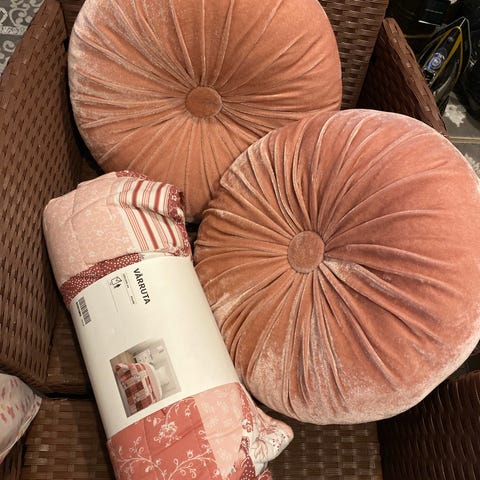 2 nye puter(50x50) og 2 nye fleecepledd i delikate rosafarger.