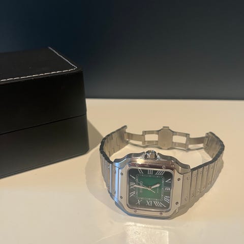 Pent brukt helsvart Cartier Santos Large WSSA0039 selges.