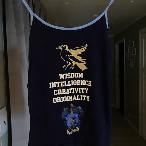 T-skjorte fra Spreadshirt med logoen Platform 9 3/4. Str M, rund hals og litt kortere ermer, så litt feminint snitt.