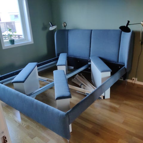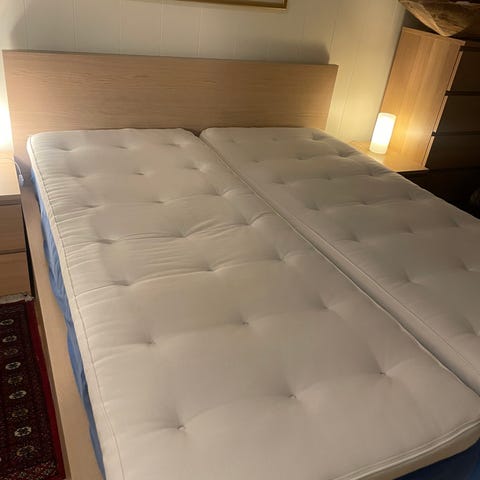 Malm seng uten madrasser, fra ikea - 180x200 m/2 skuffer selges. Sengen er pent brukt. Det følger med 2 skuffer til å ha under sengen, og evt 2 skuffer til kan kjøpes på ikea for å få skuffer på begge sider.