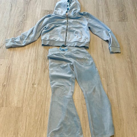 Selger fordi det har blitt for lite😊🩵Sommerfugl motivet på buksen mangler noen diamanter,og litt bruksslitasje på knærne og ermer🩵