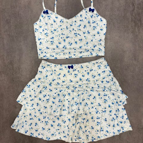 Toppen er xs og skjørtet s, men jeg vil si begge er Small