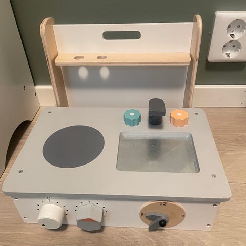 Pent brukt, men har fått en knekk i kranen (se bilde). Ringeklokken virker. Taket var nyvasket på bilde, slik at fargen er ikke like rød nå som taket ikke er vått.